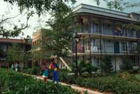 | Disney’s Port Orleans French Quarter Give into the allure of New Orleans at this moderate resort. Featuring newly renovated rooms, theme pools, limited room service, and a variety of recreation opportunities including a marina, fishing area, or perhaps a ride along the cobblestone paths in a horse drawn carriage. This resort also offers a restaurant and laundry facilities. Rates from $127 a night CLick on the Port Orleans Logo to the right to view Disney's Web page about the Port Orleans resort |